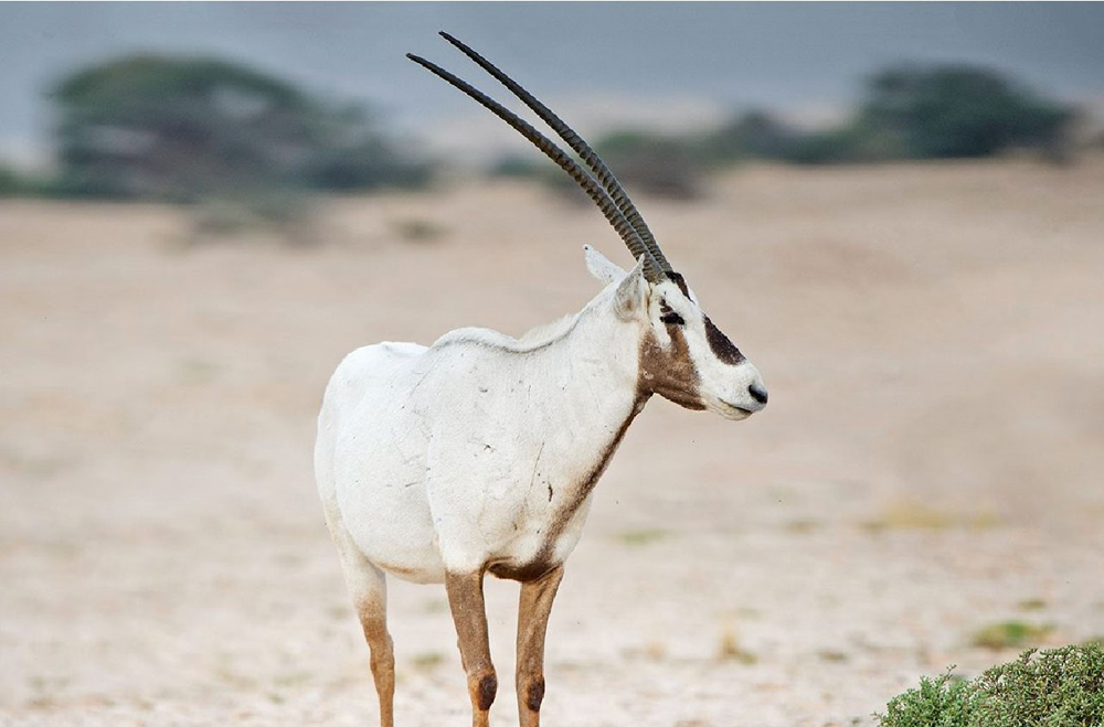 The Arabian Oryx is the national animal of Qatar. This small antelope, known for its straight horns and distinctive nose marking, was once on the brink of extinction. Thanks to conservation efforts, it has been reintroduced into the wild and is now classified as vulnerable. Continued efforts are needed to ensure its survival.