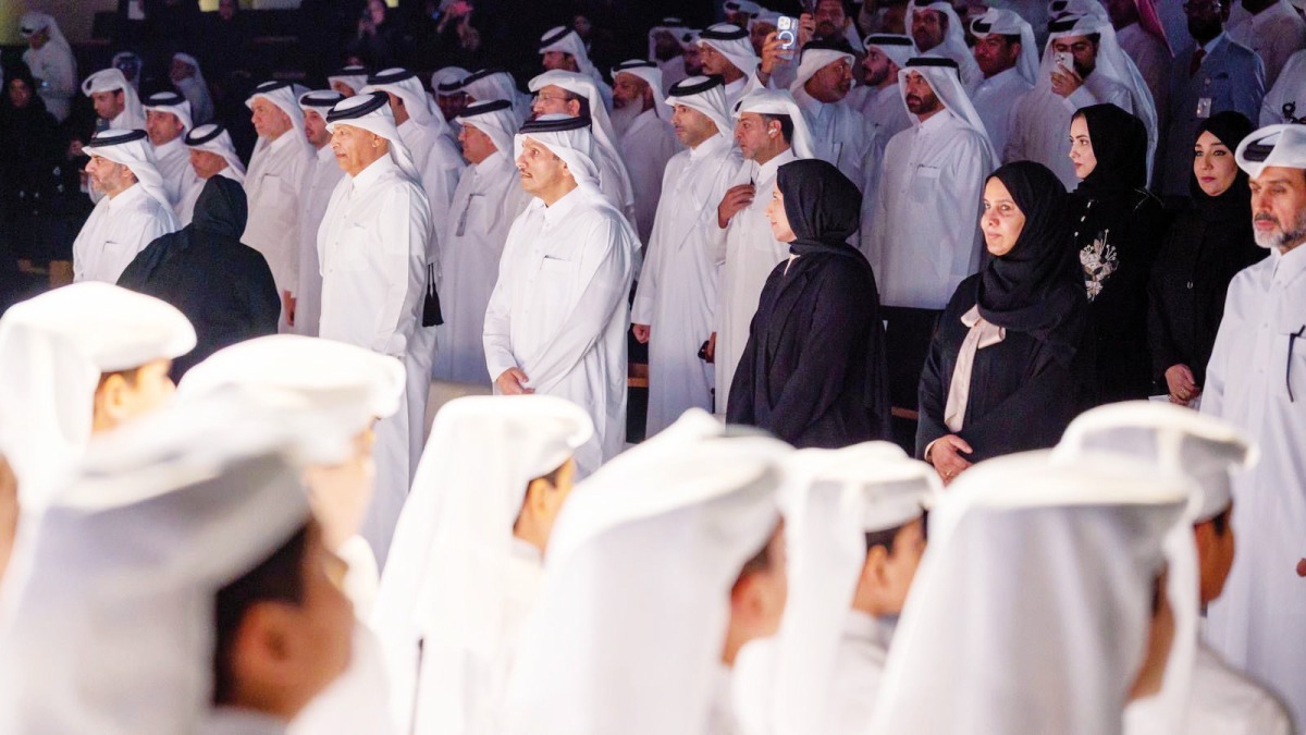 Prime Minister and Minister of Foreign Affairs H E Sheikh Mohammed bin Abdulrahman bin Jassim Al Thani along with Minister of Education and Higher Education H E Buthaina bint Ali Al Jaber Al Nuaimi attending the celebration of World Teachers’ Day.