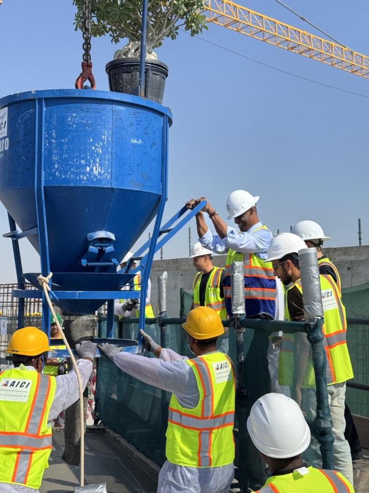 In the presence of His Excellency Jassim Mohammed Al-Asmakh, the Director of the Department of American Affairs at the Ministry of Foreign Affairs, US Ambassador to Qatar Timmy Davis, and other key project stakeholders, took part in the ceremonial placing of the final bucket of structural concrete into the Chancery.