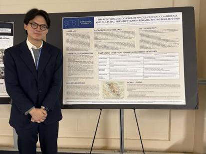 As a Kalorama Fellow through Georgetown, he conducted comparative fieldwork on Chinese clanhouses in Penang and Medan, analyzing their roles in mediating identity and authority under colonial rule. He presented this research at the 2025 Yale Undergraduate Research Conference, where he was awarded second place in humanities research. He also participated in Georgetown Global Dialogues, facilitating critical conversations on post-development, degrowth, and the future of political economy.