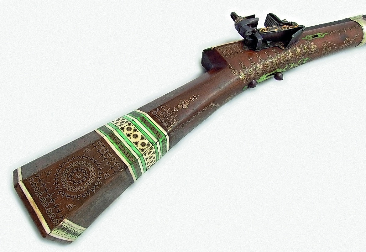 Powder and Damask explores the art of craftsmanship, which reached unprecedented levels in these regions under the Ottoman, Safavid and Mughal empires, where weapons were valued not only for their intended purpose but as works of art as well. The objects featured as part of the collection are excellent examples of the diverse styles and materials, such as ivory, horn, gold inlay and calligraphy, used to decorate weapons during this time period.