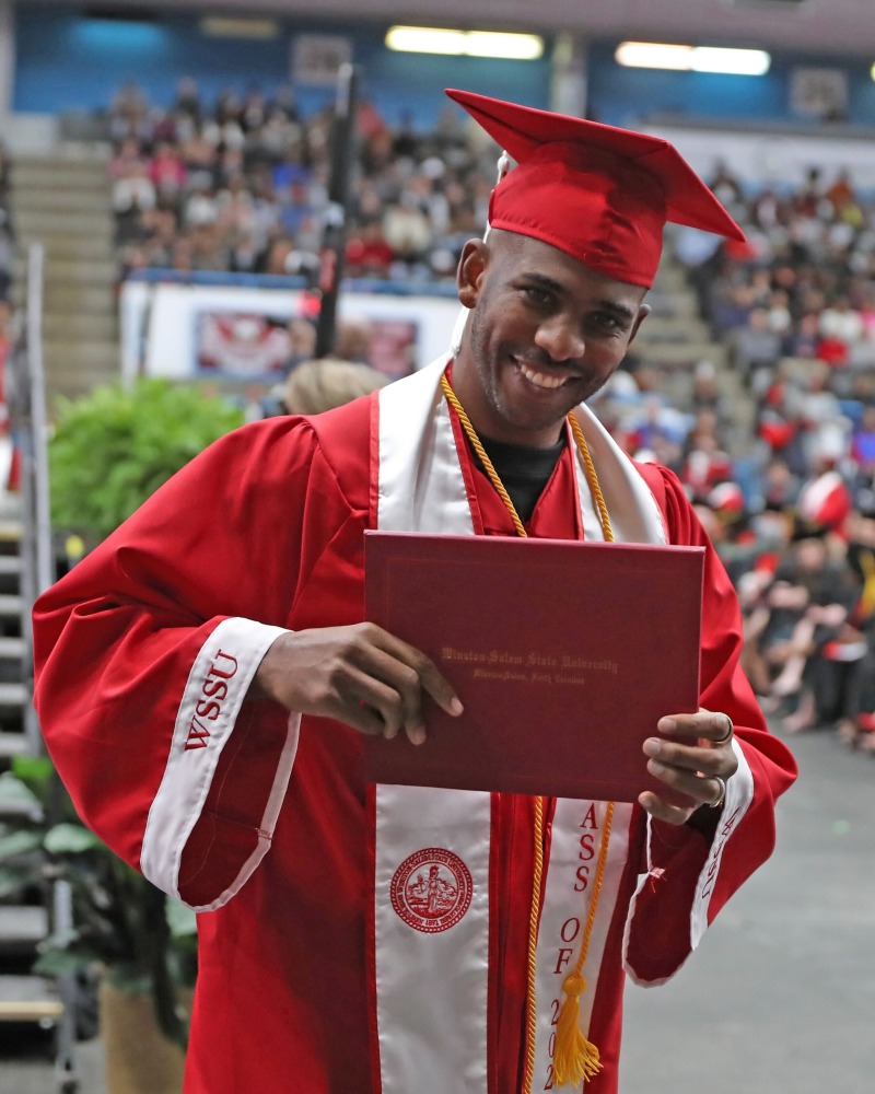 Paul spent two years at Wake Forest in his native Winston-Salem before entering the NBA draft in 2005. But he decided to go back to school in 2020 and enrolled at Winston-Salem State, earning his degree in communications while doing his schooling mostly virtually.