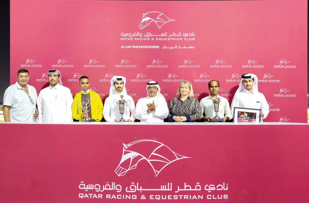 Soufiane Saadi rode Awaayid to a second-place finish, while S K Azam, with jockey Alberto Sanna, secured third place in the feature race. Qatar Racing and Equestrian Club Racing Manager Abdulla Rashid Al Kubaisi presented the trophies to the winners.