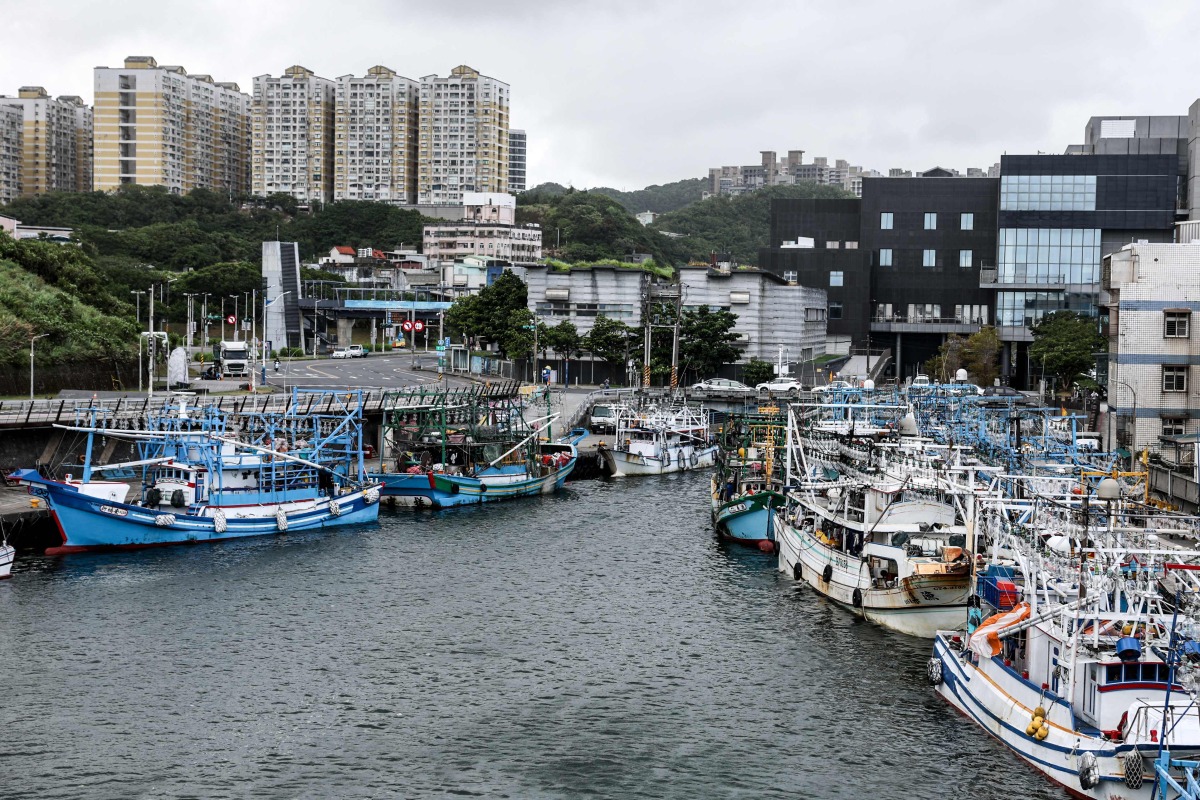 Fishing boats are docked at a fishing harbour as Super Typhoon Ragasa approaches in Keelung in northeastern Taiwan on September 22, 2025. Photo by I-Hwa Cheng / AFP