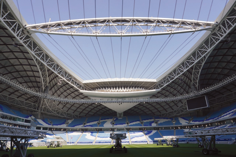 One key example of this in Al Janoub Stadium is the retractable roof, and – as the name explains – the roof can be opened and closed. This design element makes the stadium energy efficient, particularly in warm weather. When closed, no cool air will be lost from the top of the structure, and consequently, less time and energy will be needed to cool the stadium.
