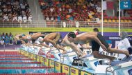 International swimmers are seen in action at one of the FINA events held at the Hamad Aquatic Center in Doha over the last...