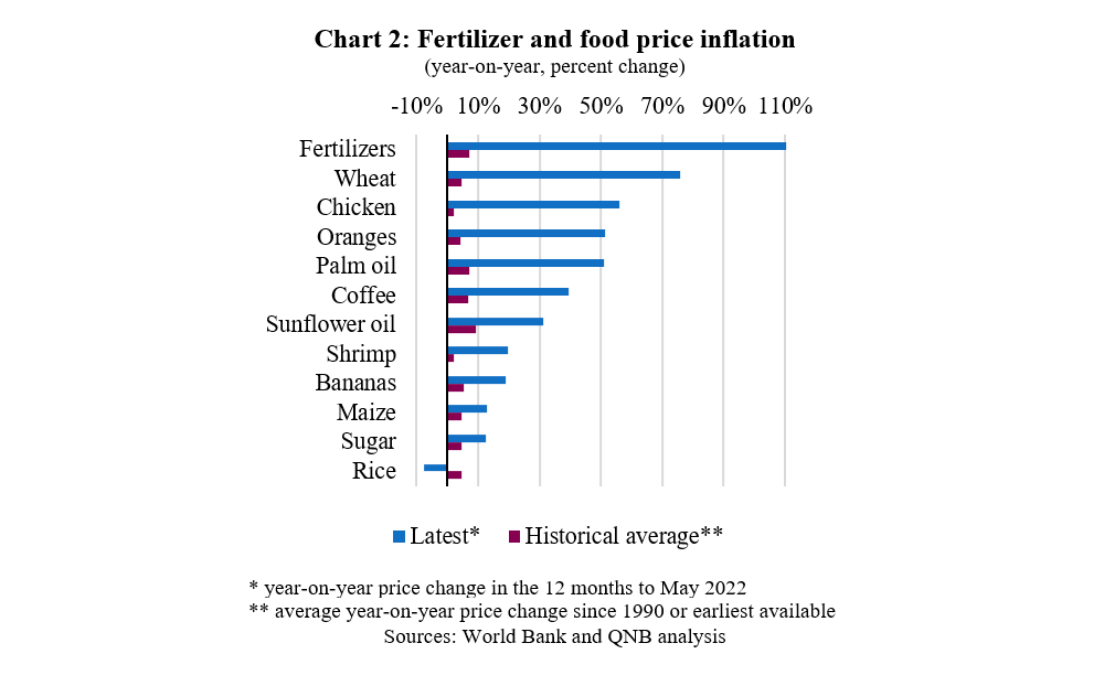 Fuel and energy also contribute to food price inflation via the cost of processing and transporting food. If oil and gas prices remain high, as we expect, they will continue to put upward pressure on food prices.