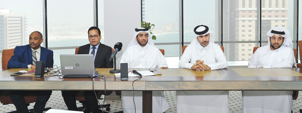 The Head of Wild Life Section at the Ministry of Municipality and Environment, Ali Saleh Al Marri (centre), with other officials at the Ministry, addressing a press conference at its headquarters in the West Bay, Doha, yesterday. Pic: Salim Matramkot / The Peninsula
