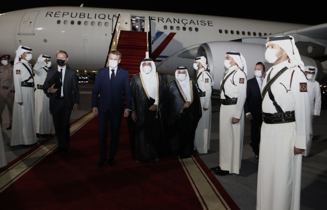 Doha: President of the French Republic HE Emmanuel Macron arrived in Doha Friday evening, on a working visit.