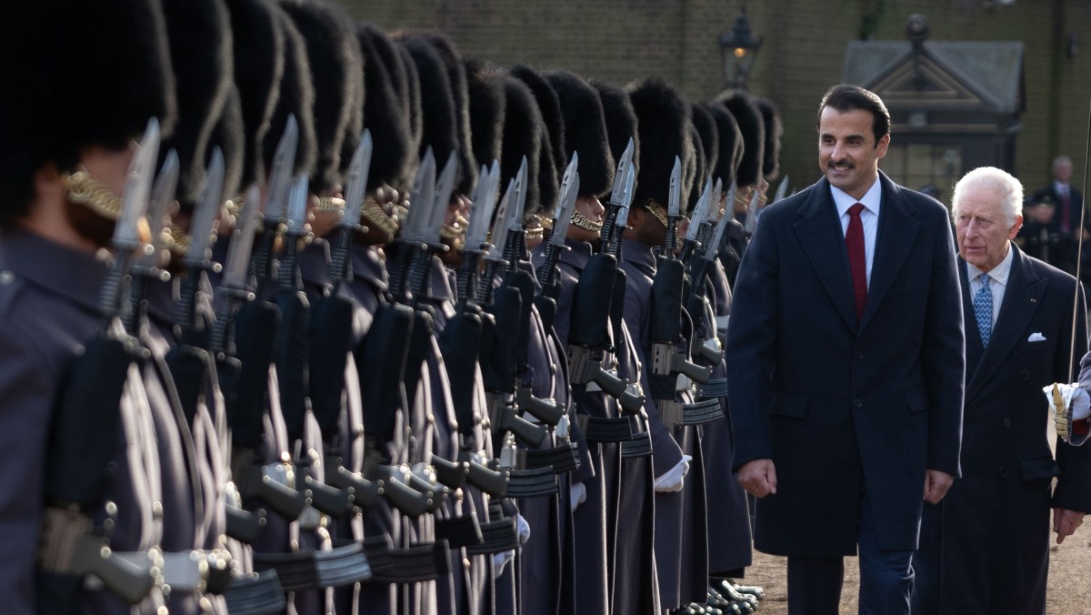 After that, HM King Charles III accompanied HH the Amir and HH Consort of HH the Amir to the Buckingham Palace in traditional royal carriages, while the Qatari and British national anthems were played in salute to Their Highnesses, and the Royal Artillery fired eighty-two rounds.
