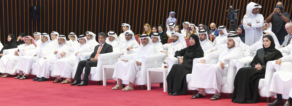 Prime Minister and Minister of Interior H E Sheikh Khalid bin Khalifa bin Abdulaziz Al Thani, Their Excellencies Ministers and other dignitaries attending the ceremony to honour all cities of Qatar as WHO’s ‘Healthy Cities’.