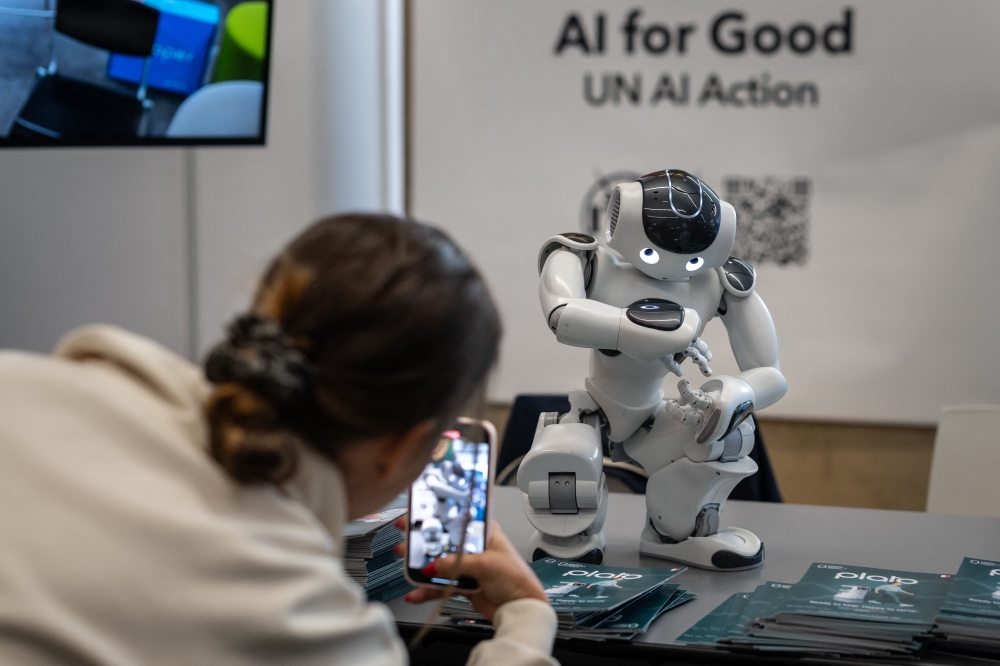 The "AI for Good Global Summit", in Geneva on Thursday and Friday is being convened by the UN's ITU tech agency -- and many unaware attendees were startled by the humanoid robots suddenly turning to look at them as they passed by.
