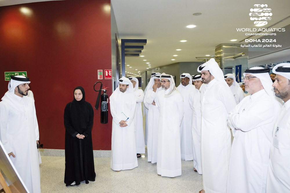Minister of Sports and Youth H E Salah bin Ghanim Al Ali and the President of the Qatar Olympic Committee and the Chairman of the Local Organising Committee of the World Aquatics Championships - Doha 2024 H E Sheikh Joaan bin Hamad Al Thani yesterday visited Aspire Zone to oversee the final preparations for the event to be held from February 2 to 18 next year.