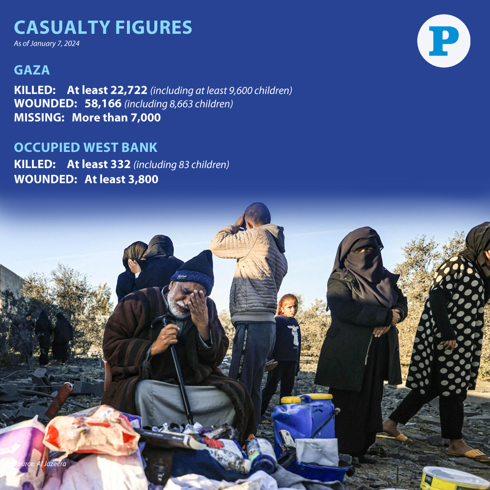 [1pm Doha Time] Official Gaza death toll surpasses 22,700 with 9,600 children killed