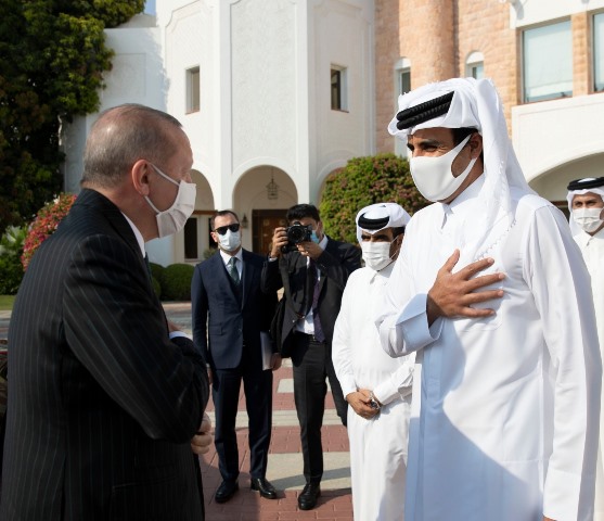 HH the Amir and HE the Turkish President exchanged views on the latest regional and international developments as well as issues of joint interest, in the meeting that took place at Al Bahr Palace today.
