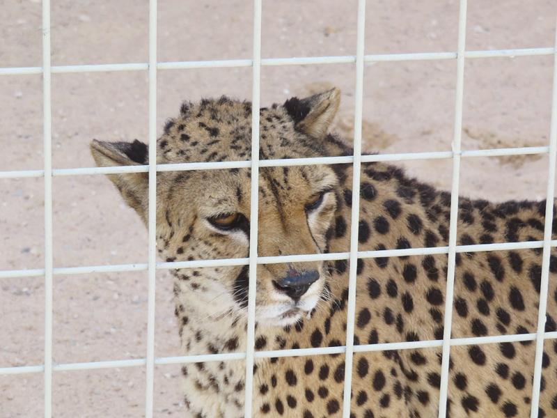The zoo has an Asian bear, two African lions, two Bengal tigers, two white tigers, two black jaguars, two cheetahs. The monkey section includes two chimpanzees, 12 baboons, 16 vervets, 12 cappuccinos, and three rhesuses. The crocodile pond has three Nile crocodiles. Two giraffes, a rhinoceros, an Asian cat, and a wild cat have been added to the zoo.
