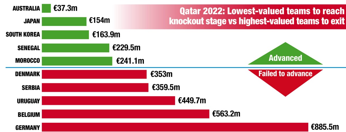 Germany were the most-valued team to crash out at the end of the opening stage raising questions about the value-to-performance ratio at the opening round of Qatar 2022.