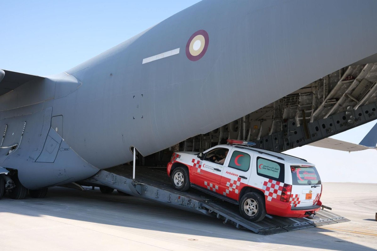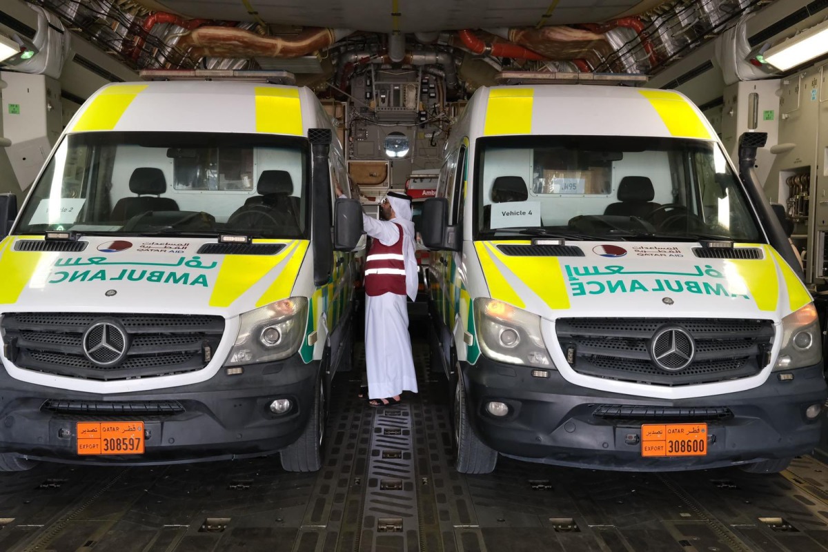 The plane carrying 24 tonnes of aid, including food and medical supplies and 6 ambulances, was provided by the Qatar Fund for Development, the Ministry of Public Health, and the Qatari Red Crescent, in preparation for transporting it to Gaza. This brings the total number of aircraft to 38, with a total of 1,243 tonnes.