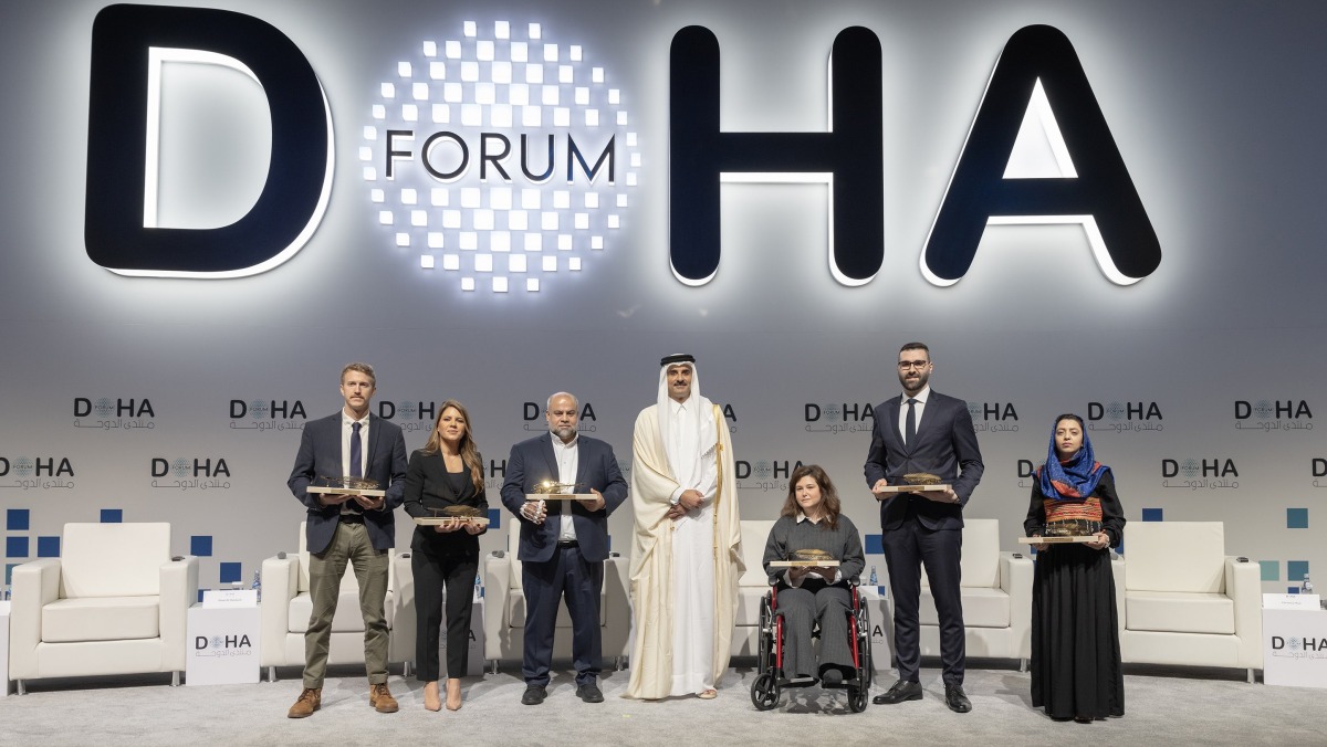 During the event, HH the Amir presented the Doha Forum Award to several recipients, including Wael Al Dahdouh and Carmen Joukhadar, correspondents for Al Jazeera Network, independent photojournalist Moataz Azaiza, AFP journalists Dylan Collins and Christina Assi, Director of Arman FM and Arakizia FM Sadaf Popalzai.