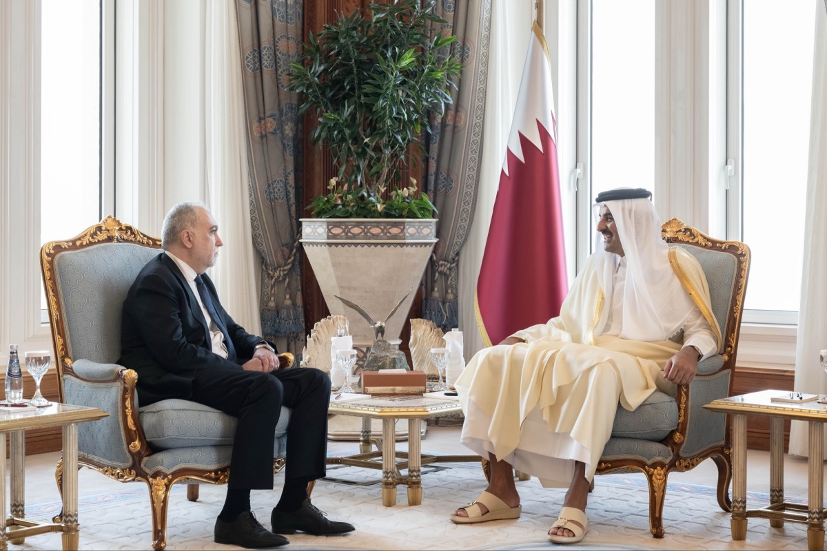 Doha, Qatar: The Amir HH Sheikh Tamim bin Hamad Al-Thani met in his office at the Amiri Diwan on Sunday, December 7, 2025, the Ambassador of the Republic of Bulgaria to Qatar, HE Plamen Stankov Delev, who called on the Amir to greet him on the occasion of the end of his tenure in the country.