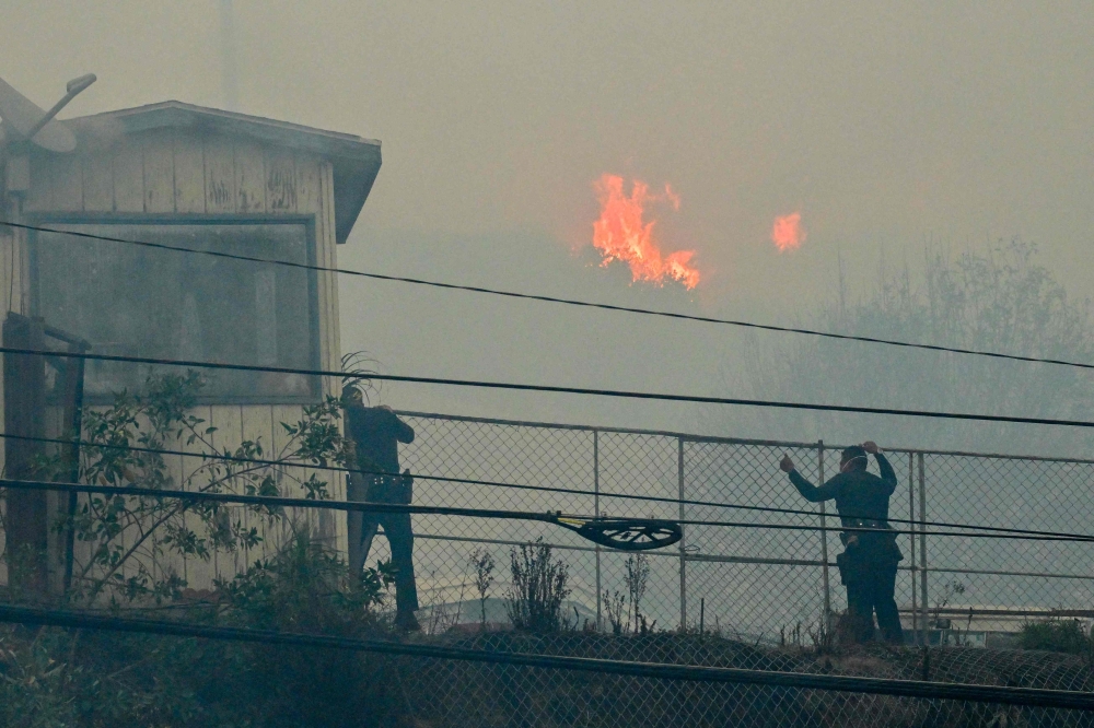 Los Angeles, United States: A ferocious wildfire in a Los Angeles suburb devoured buildings and sparked panicked evacuations Tuesday, as hurricane-force winds tore through the region.