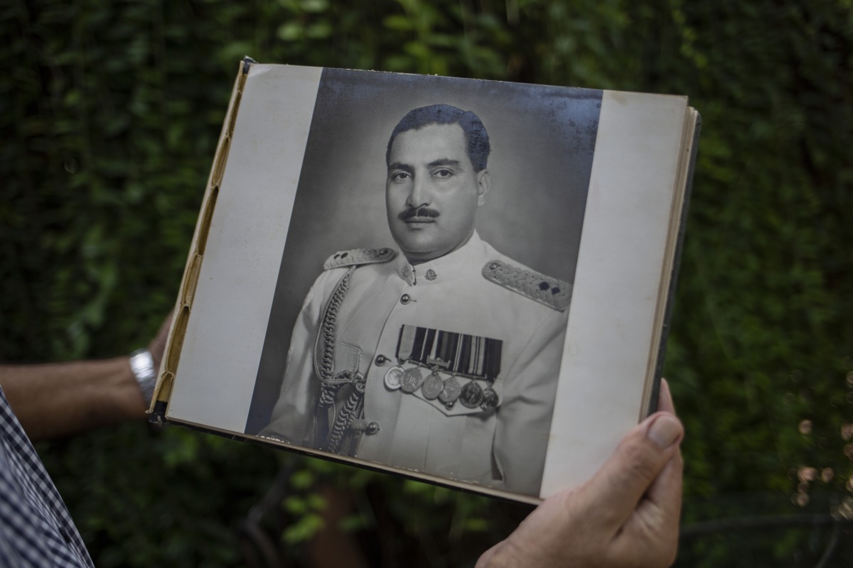 Hassan holds a photo of his father, who helped create a popular variety of basmati rice in Pakistan in the 1960s. Saiyna Bashir for The Washington Post