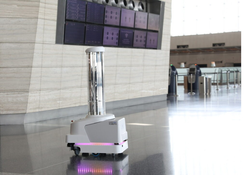 One may believe themselves in a Star Wars theme park upon entering the airport. What are all of those intergalactic-looking helmets and robots circling everywhere?  The robots that have been put in place all around the facility, especially in the zones of higher visitor concentrations. These autonomous devices kill the majority of noxious micro-organisms in the air, by emitting concentrated UV-C light, hence reducing the risk of contamination by the virus. The ultraviolet solutions have also been employed in the disinfection tunnels for the passing luggage.