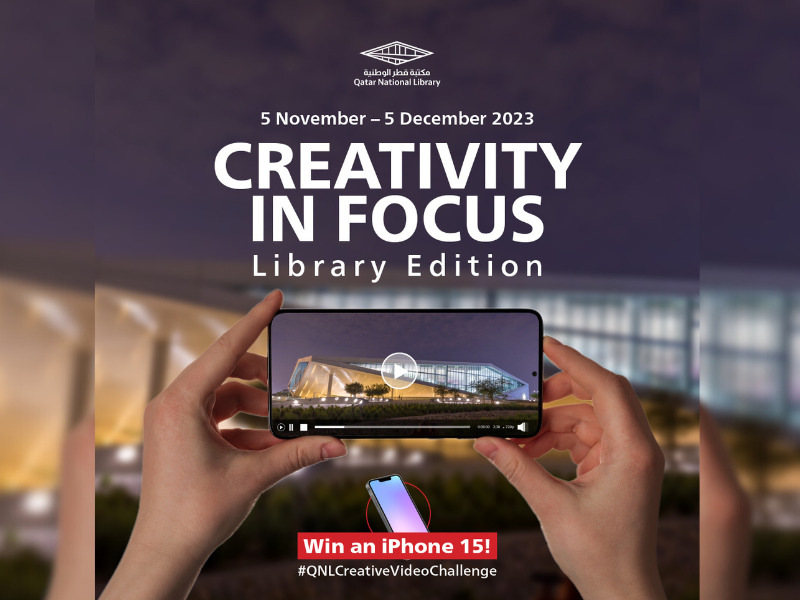 All imaginative and creative individuals are invited to join and use their artistic talents to depict Qatar National Library through its 'Creative Video Challenge' contest. QNL is on the lookout for young adults and adults (aged 16 and above) who can uniquely capture the library's space and architectural marvels. The winner of this challenge will receive an iPhone 15! Click here for more information and submission guidelines.