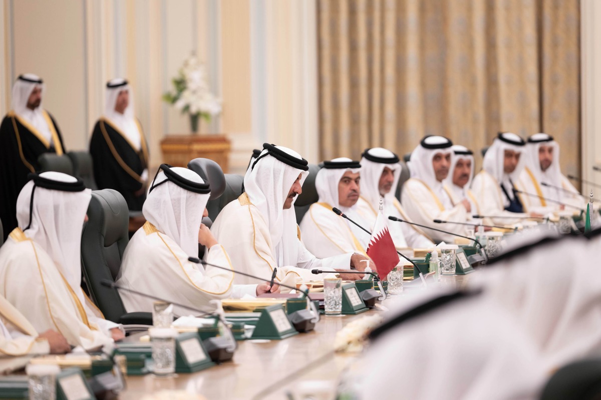 The meeting was attended by Prime Minister and Minister of Foreign Affairs HE Sheikh Mohammed bin Abdulrahman bin Jassim Al-Thani, Minister of Interior and Commander of the Internal Security Force (Lekhwiya) HE Sheikh Khalifa bin Hamad bin Khalifa Al-Thani, Chief of the Amiri Diwan HE Abdullah bin Mohammed bin Mubarak Al Khulaifi, Minister of Finance HE Ali bin Ahmed Al Kuwari, Minister of Culture HE Sheikh Abdulrahman bin Hamad bin Jassim bin Hamad Al-Thani, Minister of Sports and Youth HE Sheikh Hamad bin Khalifa bin Ahmed Al-Thani, Minister of Commerce and Industry HE Sheikh Faisal bin Thani bin Faisal Al-Thani, Minister of Transport HE Sheikh Mohammed bin Abdullah bin Mohammed Al-Thani, Secretary-General of the Ministry of Foreign Affairs HE Dr. Ahmed bin Hassan Al Hammadi, Minister of State at the Ministry of Foreign Affairs HE Dr. Mohammed bin Abdulaziz bin Saleh Al Khulaifi, alongside a lineup of Their Excellencies the Ministers and members of the official delegation accompanying HH the Amir.