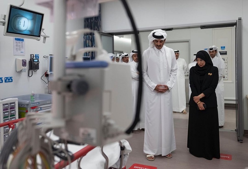 The Amir toured the center's facilities, which has the latest medical equipment and technologies in care and diagnosis fields and oxygen therapy room. He was also briefed on the medical facilities linking the new building with the relevant departments at Hamad General Hospital.