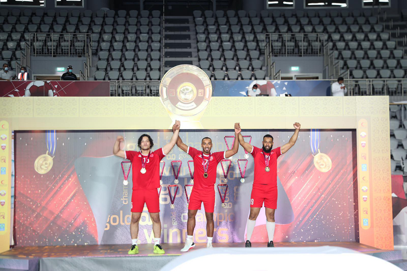 Doha: Al Arabi players and team officials celebrate winning the handball league title for the 2019-20 season.