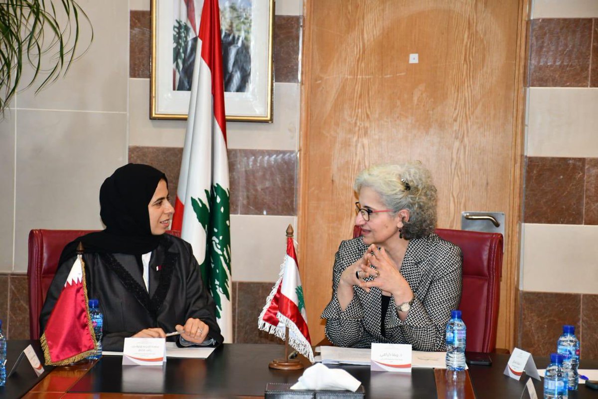 During the visit, Her Excellency and the accompanying delegation met with HE Minister of Education and Higher Education of Lebanon Dr. Rima Karami, and the team of experts responsible for preparing and developing school curricula at the Lebanese Ministry of Education and Higher Education. The meeting was attended by Ambassador of the State of Qatar to the Lebanese Republic HE Sheikh Saud bin Abdulrahman Al Thani.