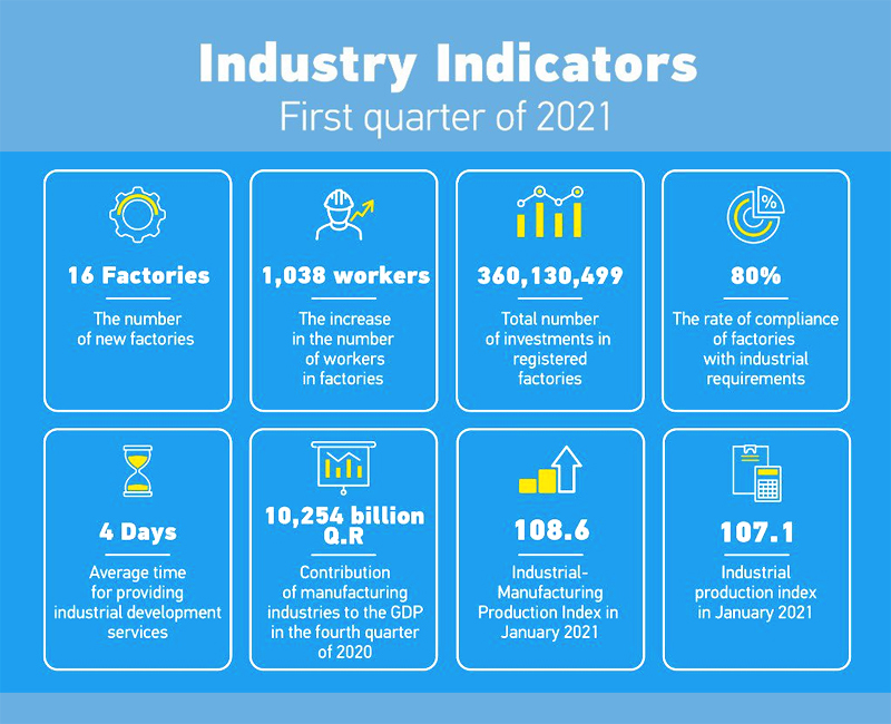 According to the ‘Industry Indicators First Quarter 2021’ infographics posted yesterday, QR10.254bn from manufacturing industries improved the 2020 Q4 GDP and added 1,038 workers.
