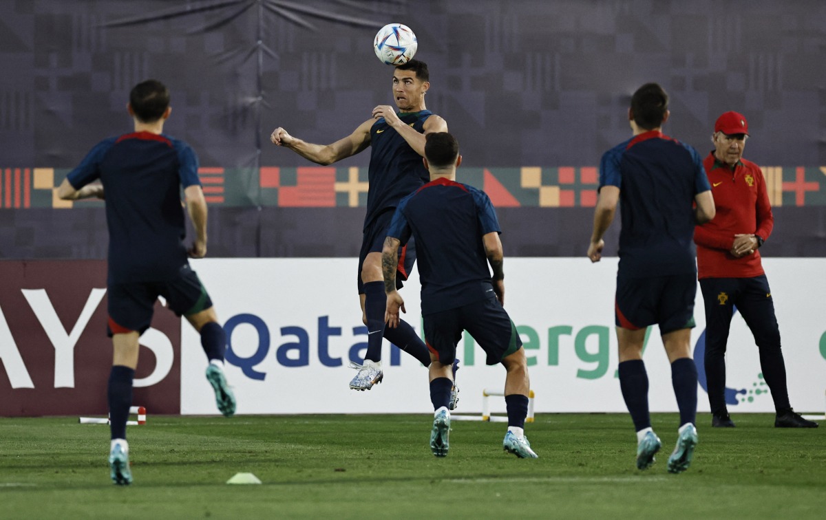 Portugal’s Cristiano Ronaldo in action with teammates during training. Reuters