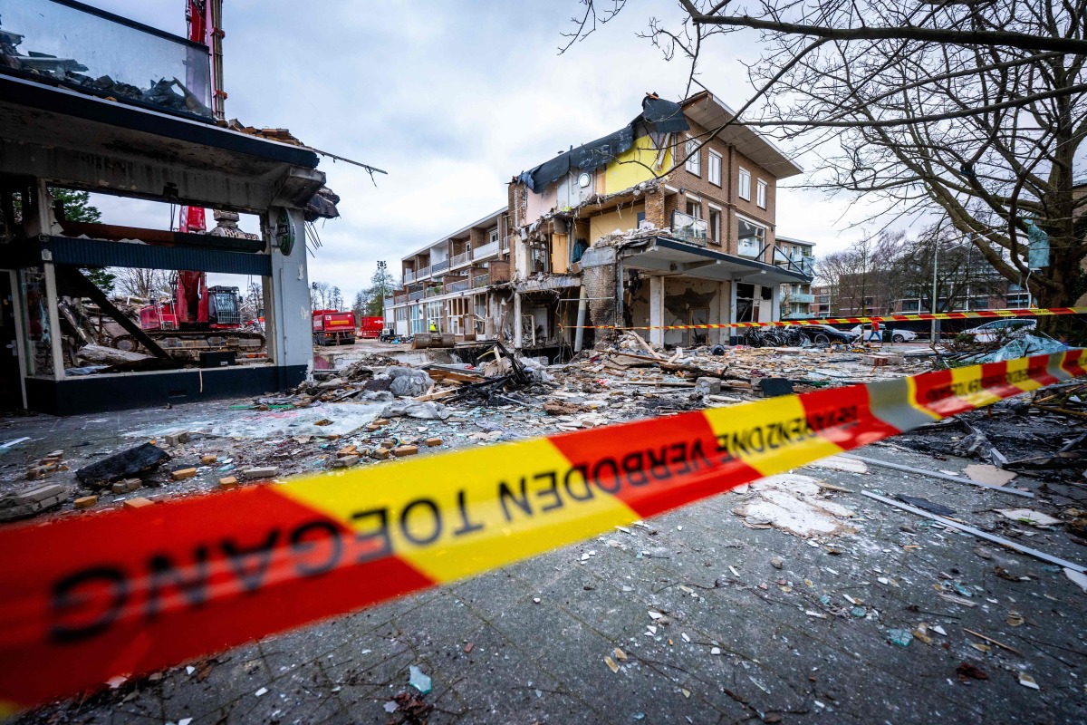 Heavily damaged houses are pictured two days after an explosion and fire destroyed an apartment block, killing at least six people, on the Tarwekamp in The Hague on December 9, 2024.Photo by Josh Walet / ANP / AFP