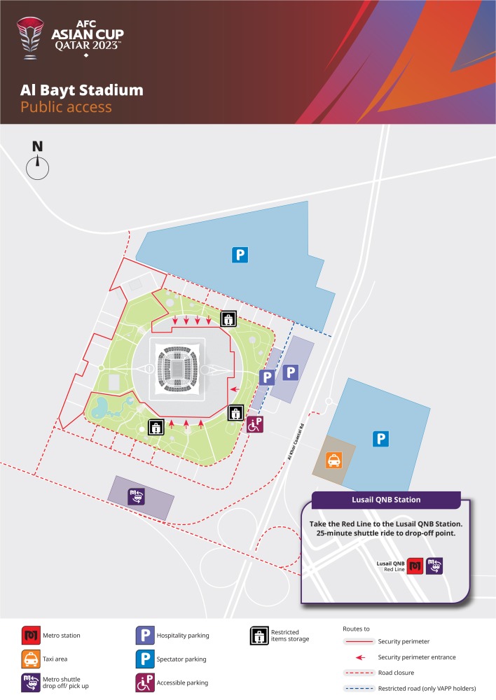 Spectators traveling by taxi and private vehicles will also have a designated area for drop-off and parking at each of the stadiums.