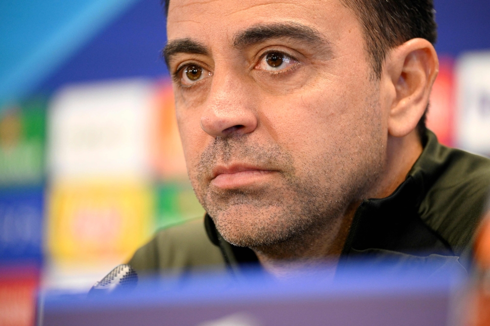 Barcelona's Spanish coach Xavi gives a press conference on the eve of their UEFA Champions League last 16 second leg football match against SSC Napoli at the training center in Barcelona on March 11, 2024. (Photo by Josep LAGO / AFP)