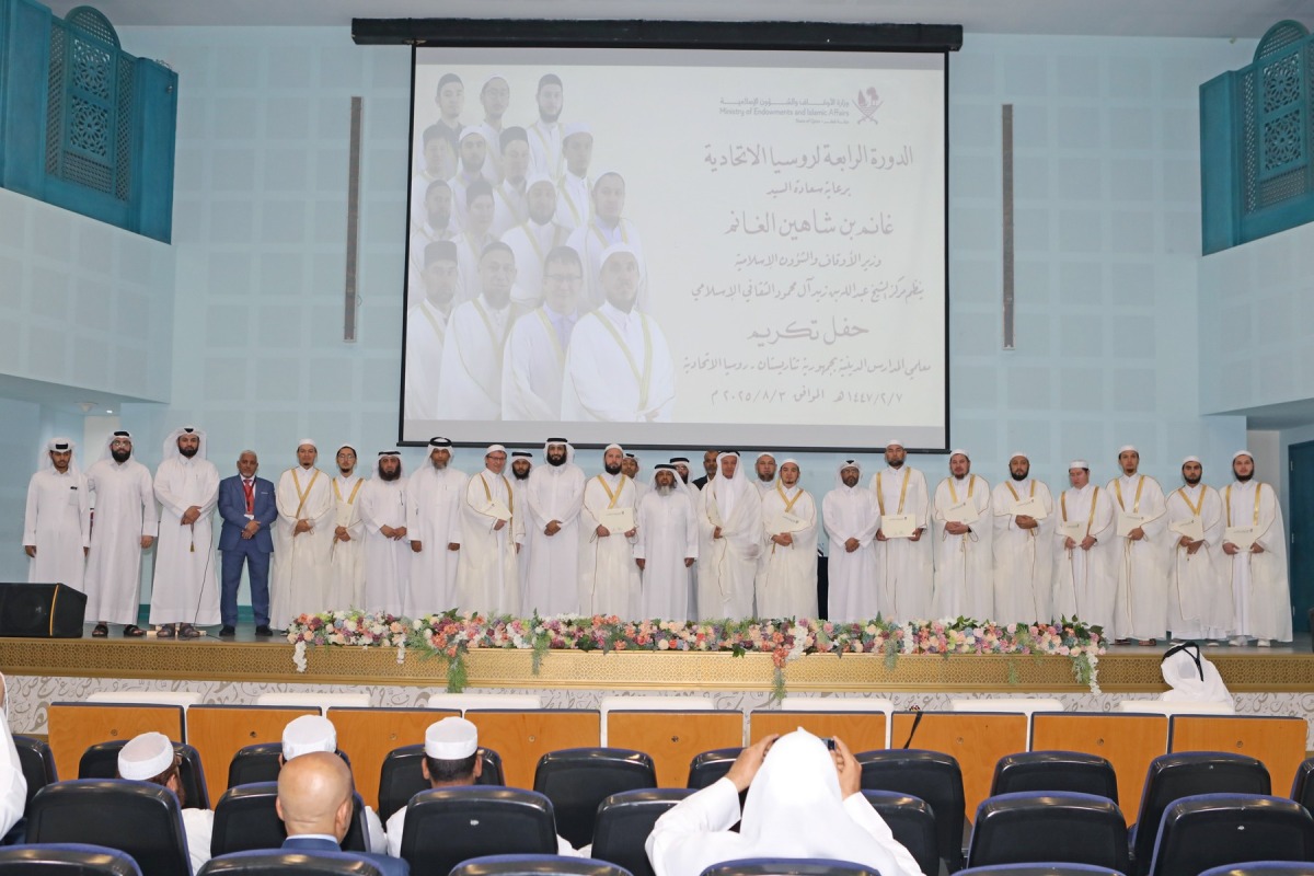 Doha, Qatar: Under the patronage of Minister of Awqaf and Islamic Affairs, H E Ghanem bin Shaheen bin Ghanem Al Ghanim and in the presence of Assistant Undersecretary for Islamic Affairs, Khalid bin Shaheen Al Ghanem, along with a group of ministry officials, department directors, and heads of divisions, the Sheikh Abdulla Bin Zaid Al Mahmoud Islamic Cultural Center held the closing ceremony of the Arabic language teaching skills development course for fourteen Arabic language teachers from religious schools in the Republic of Tatarstan, Russia.