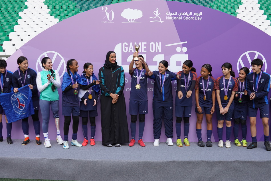 H E Sheikha Hind alongside Zainab Al Eqabi, a para-athlete and Volkswagen Middle East’s brand ambassador, awarded the winning teams in the Women’s and Girls’ Football Initiative, sponsored by Volkswagen Middle East.
