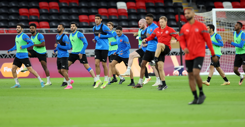 Al Sadd players during a training session on the eve of the final. PICS: Mohamed Farag