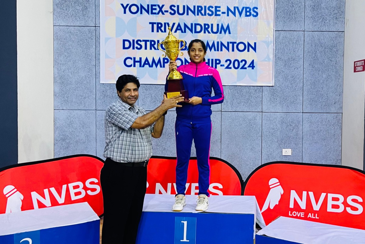 Doha, Qatar: It was an expected victory for NVBS Doha Qatar players Nivedya Aji, Adam Noujas, Andriya Reetha Sojan, Sanjanaa Nakulan, Riya Kurian & Adlyn Mary Sojan in the Trivandrum District Badminton Championship 2024, India Kerala. A team of 19 players under 3 coaches and 4 parents travelled to Trivandrum, Kerala, India to participate in the championship. Last year, 14 players travelled and achieved success in the District Championship unexpectedly. However, in 2024, with the confidence and efforts of NVBS management, we were assured that the kids would achieve even more.