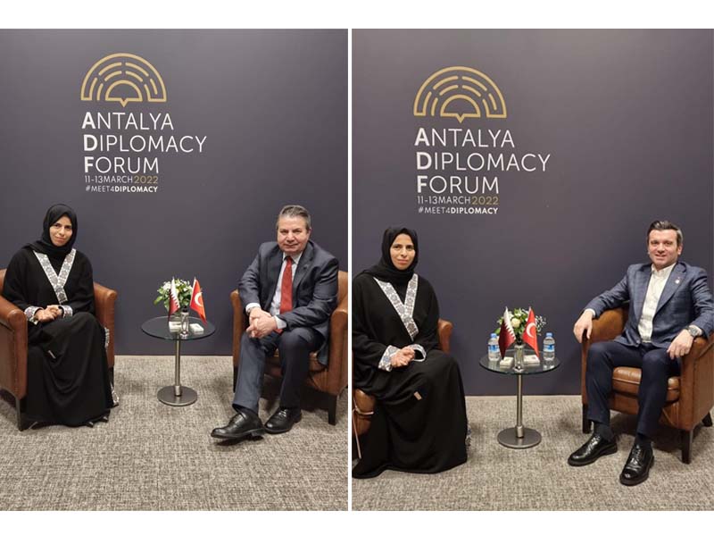 Assistant Foreign Minister HE Lolwah bint Rashid Al Khater met separately today with HE Yavuz Selim Kiran, Sedat Onal, the Deputy Ministers of Foreign Affairs of the Republic of Turkey, on the sidelines of the 2nd Antalya Diplomacy Forum.