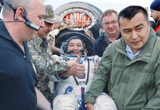 Joining Padalka for the ride back to Earth were two rookies, Kazakh cosmonaut Aidyn Aimbetov and Danish astronaut Andreas Mogensen, both of whom spent less than 10 days in orbit.