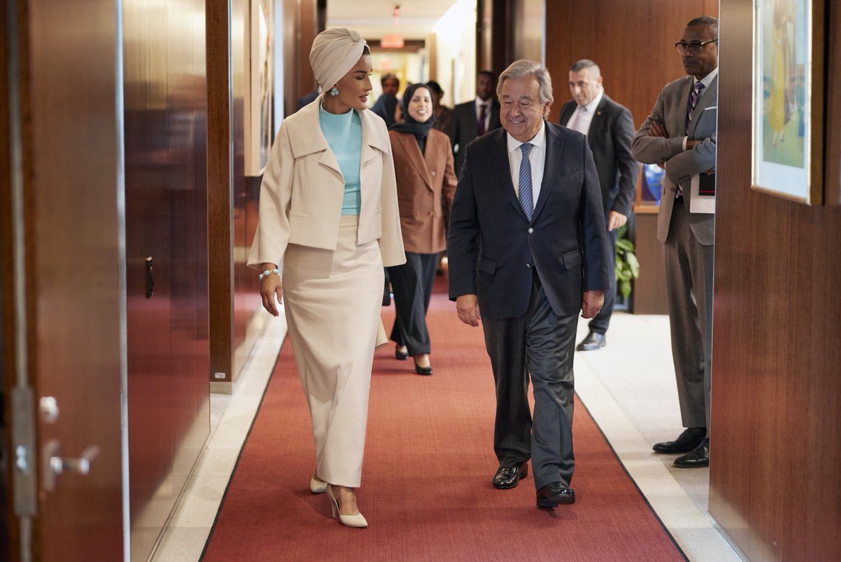 New York: HH Sheikha Moza bint Nasser, Chairperson of Education Above All Foundation (EAA) and UN Sustainable Development Goal Advocate, met today with United Nations Secretary-General HE Antonio Guterres, at the UN Headquarters in New York.
