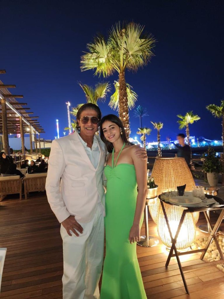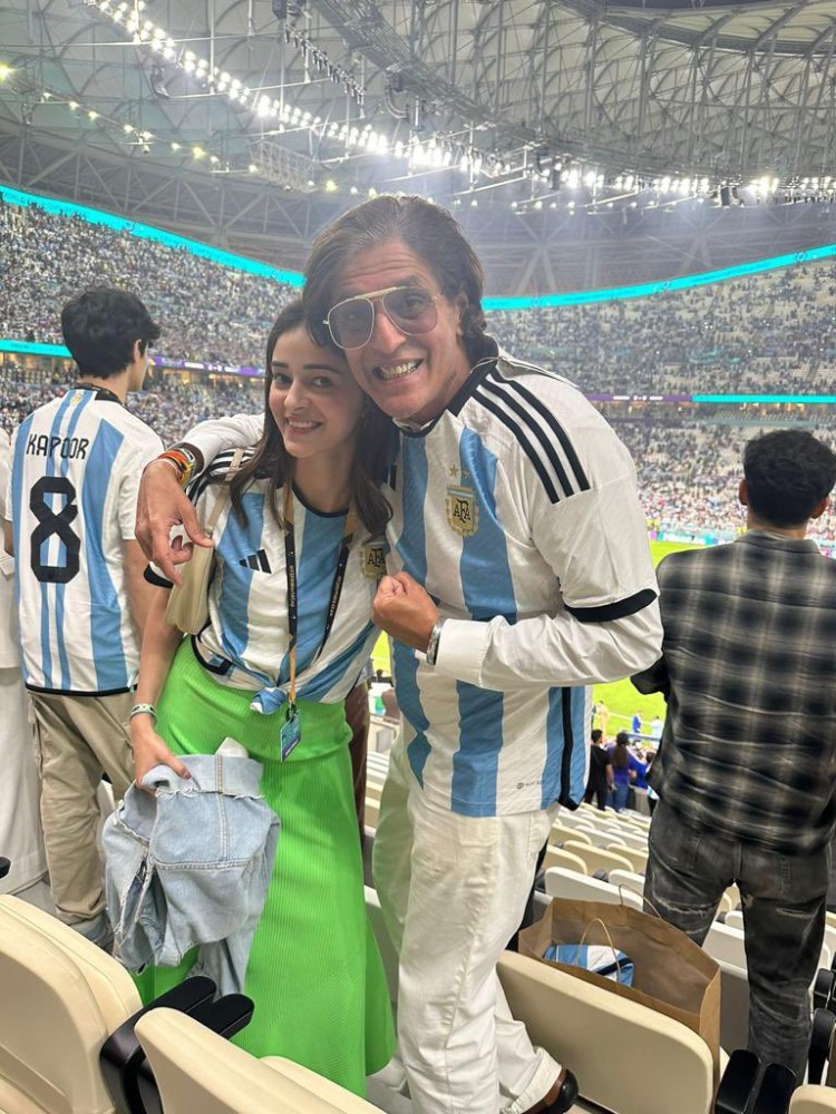 "Fun times rolling at the #FIFAQatar22 world cup semi-finals with my papa @ChunkyThePanday... What an experience it was to watch Argentina beating Croatia & seeing Messi just be the legend that he is! Thank you @qatarairways @HIAQatar @QatarExecutive," tweeted Ananya Panday.