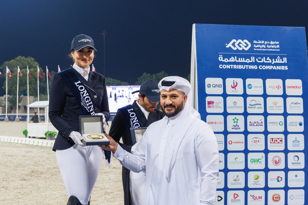 Faisal Al Kahla, Deputy Director of the Longines Hathab Championship, and Omar Al Buainain, Director of the Services Sector, supporting the Qatar Equestrian Federation, crowned the winners.