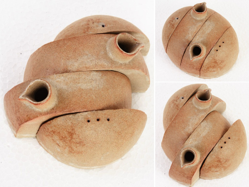The cleverly crafted ceramic piece titled “The Bun” is a functional 4-in-1 container designed to hold salt, pepper, olive oil, and balsamic vinegar. Inspired by the items typically served with bread, the set is thoughtfully shaped like a bun, combining practicality and artistic charm.