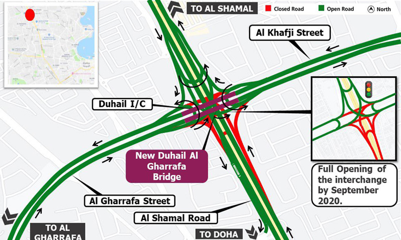 Doha: Coinciding with the opening of schools for the new academic year 2020-2021, the Public Works Authority (Ashghal) opened Duhail Al Gharrafa Bridge and parts of traffic signals within Duhail Interchange Development Project on Shamal Road, six months