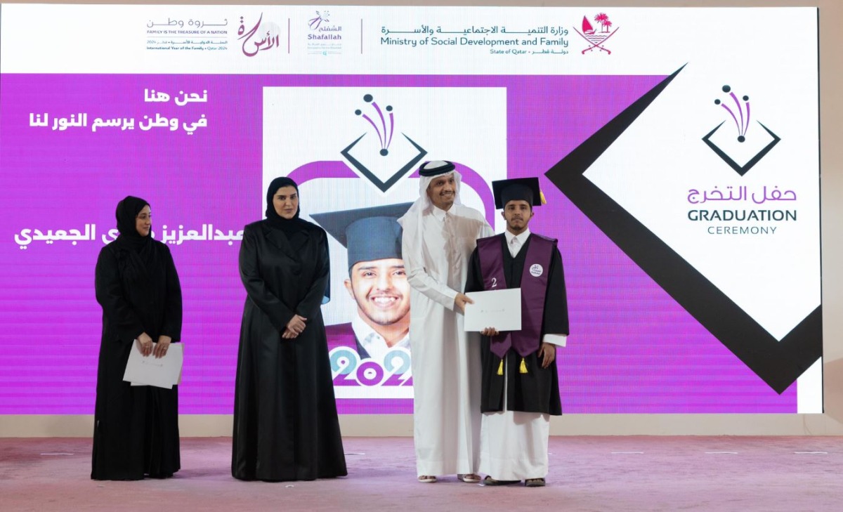 HE Prime Minister and Minister of Foreign Affairs Sheikh Mohammed bin Abdulrahman bin Jassim Al-Thani honored the 43 graduates from the Shafallah Center and handed them their graduation certificates.