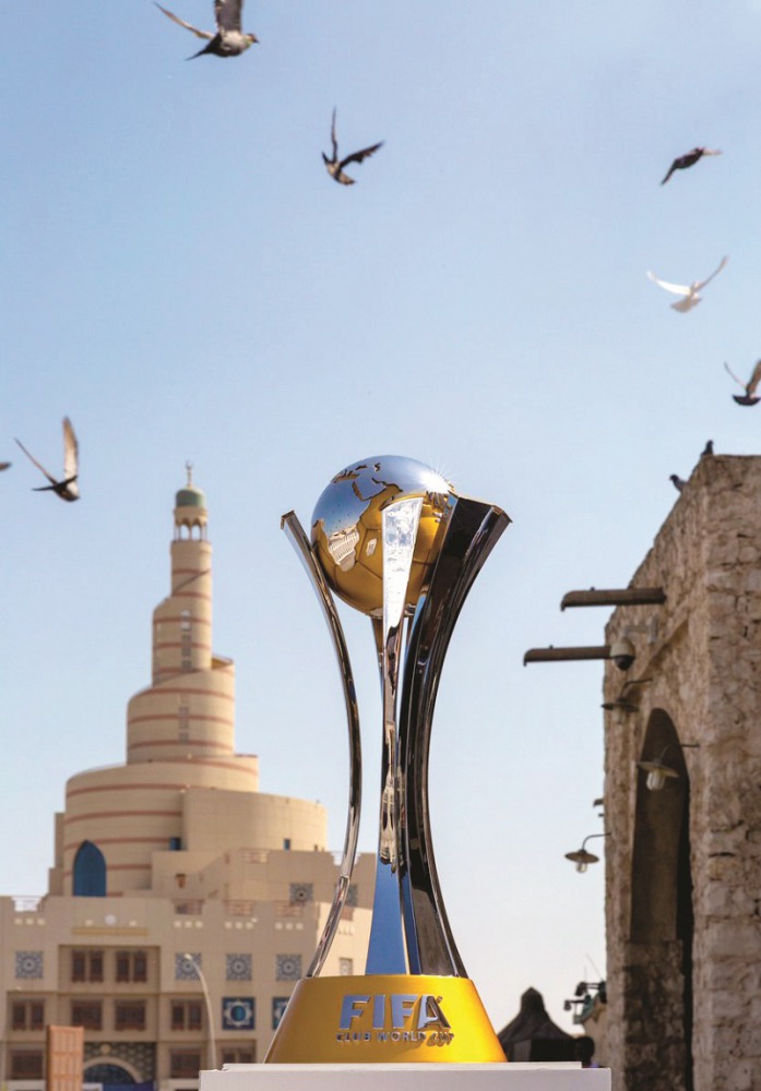 The FIFA Club World Cup 2019 trophy on display at Doha’s popular Souq Waqif yesterday. The FIFA Club World Cup 2019 Trophy Tour officially got under way as Qatar’s preparations to host the pinnacle of global club football continue.